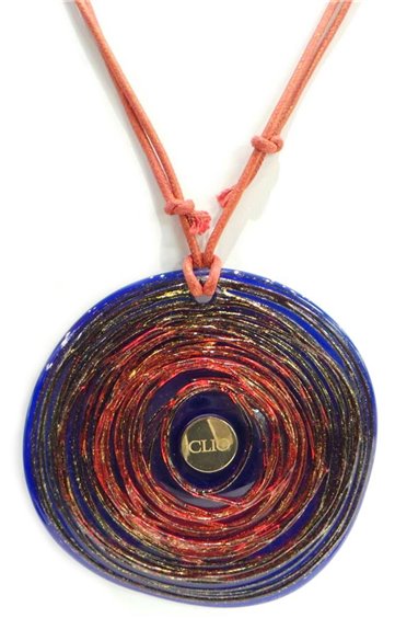 Meraviglioso pendente "Chakra" in vetro di Murano , Fornace Cenedese misura diametro cm 8,5 con punto centrale in oro giallo 18 kt e cordino regolabile in filo cerato rosso regolabile. Marca Bibigi'.