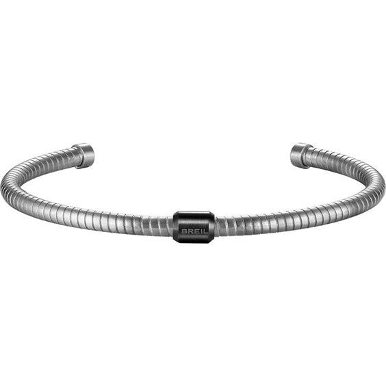 Bracciale Breil a schiava in acciaio satinato con inserto brunito . Lunghezza diamatro mm 61 . Certificato d'autenticita' e scatola originale Breil .