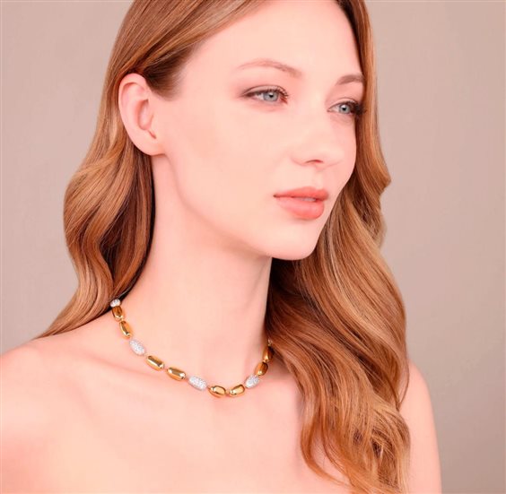 Collana Bronzallure realizzata in lega Golden Rosé, placcata Oro rosa 18kt con zirconi bianchi. Lega brevettata Golden Rosé Designed and made in Italy Nickel free, cadmium free Ipoallergenici