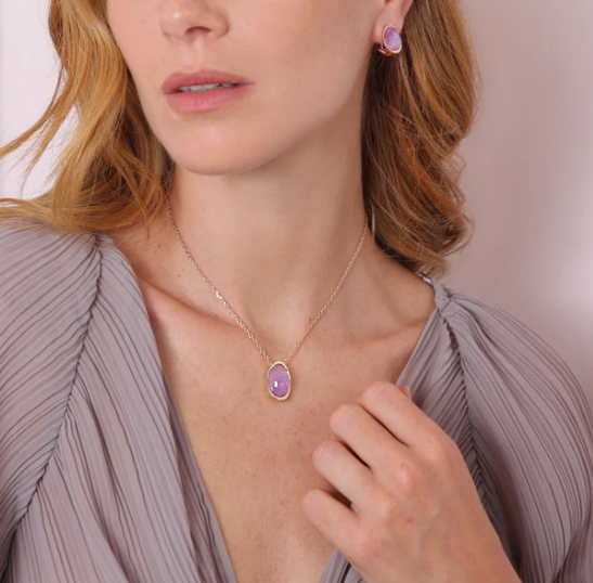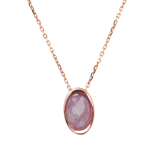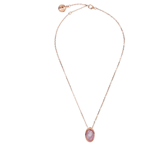 Collana Bronzallure realizzata su base Golden Rosé, placcata oro rosa 18kt, con catena forzatina impreziosita da un pendente in pietra naturale dalla forma ovale (12x17 mm) e superficie sfaccettata; chiusura a moschettone con extender. Lega brevettata Golden Rosé Designed and made in Italy Pietre naturali selezionate Nickel free, cadmium free Ipoallergenica Materiale: Golden rose Lunghezza (cm): 41 Lunghezza extender (cm): 6 Peso (g): 11.6