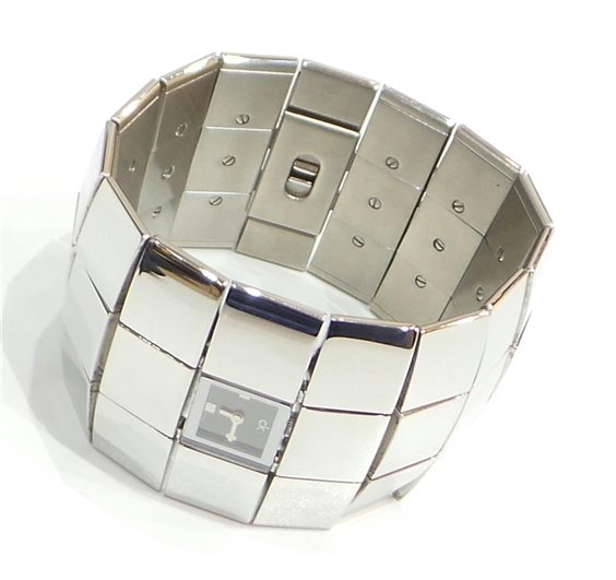 Orologio-bracciale Calvin Klein al quarzo donna. Cassa quadrata mm 12 x 12 e cinturino ( larghezza mm 38 ) in acciaio con chiusura a scomparsa. Fondo WR 3 atm chiuso con 4 viti, vetri zaffiro e quadrante nero con index e sfere in acciaio. Corona a pressione. 2 anni di garanzia.