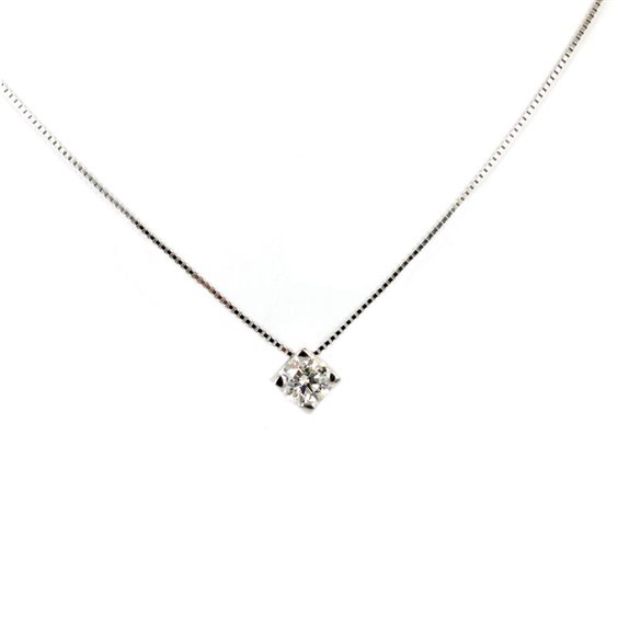 Collana Davite & Delucchi in oro bianco e diamanti . Collana in oro bianco con elegante punto luce costituito da un diamante a taglio brillante, fermato da un elegante castone in oro bianco. Caratura del diamante 0.30 ct.