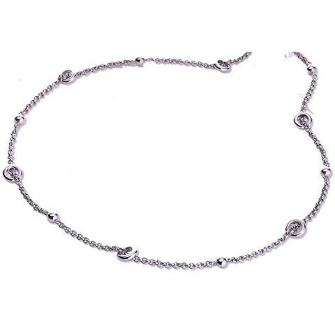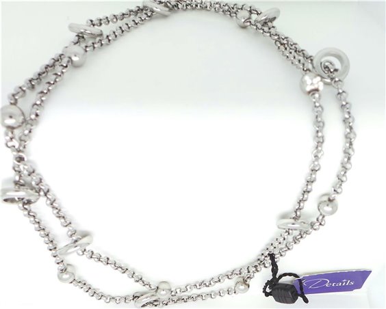 collana acciaio anallergico rolo lucido di diametro mm 3 con infilate delle sferette e dei anellini lunghezza cm 80 senza chiusura da infilare per la testa .garanzia due anni