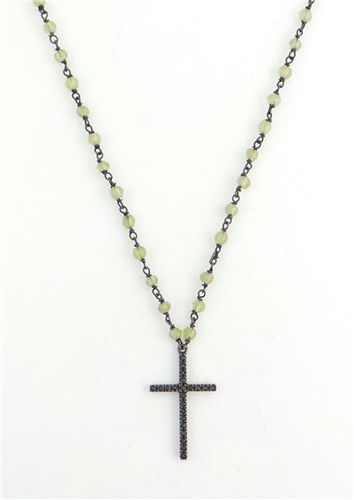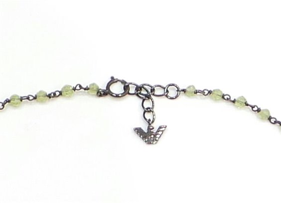 Collana Emporio Armani donna cm 49 piu' cm 2,5 di prolunga con anellini e aquila finale per messa a misura,con montatura in argento 925 brunito, pietre naturali verdi e croce con spinelli black. Certificato di autenticita'.