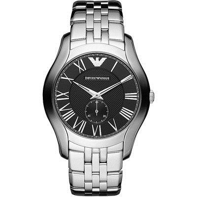 Orologio con movimento al quarzo da uomo . Cassa mm 42 in acciaio , quadrante color antracite con numeri romani e sfere in acciaio lucido . Secondina al 6 , corona con logo Armani a pressione e fondo cassa WR 3 atm serrato a pressione . Cinturino in acciaio lucido con chiusura a scomparsa e sblocco con alette laterali . 2 anni di garanzia internazionali .