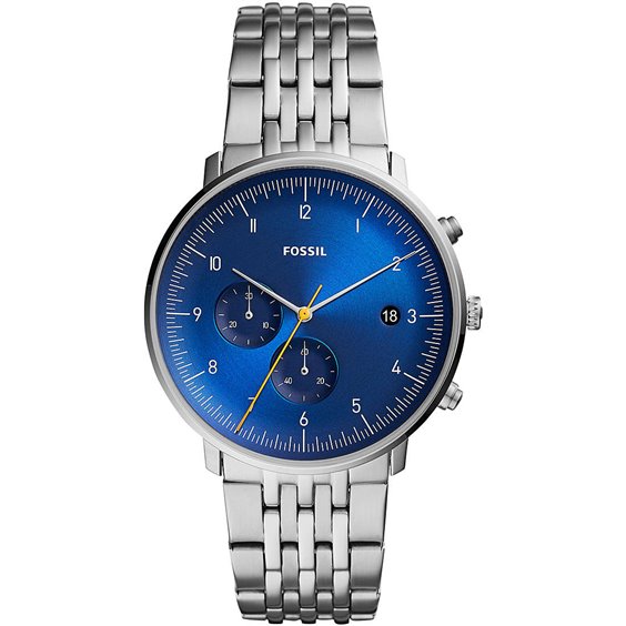 Orologio cronografo da uomo di Fossil della collezione Chase Timer. Modello con cassa rotonda del diametro di 42 mm in acciaio inossidabile di colore silver con finitura lucida e satinata e spessore di 10 mm. Orologio con vetro trasparente, quadrante di colore blu. Bracciale in acciaio inossidabile di colore silver con finitura satinata e lucida, chiusura deployante e distanza delle anse di 22 mm. Orologio con movimento al quarzo e resistenza all'acqua di 3 ATM