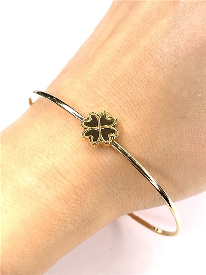 bracciale rigido regolabile in argento placcato oro giallo quadrifoglio
