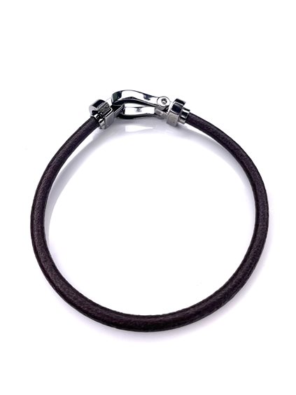 Bracciale uomo in pelle marron con chiusura in argento brunito.