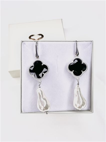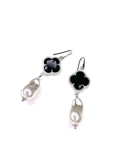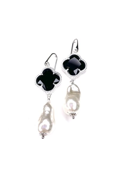 orecchini pendenti in argento 925 con onice sfaccettata e perla scaramazza naturale
