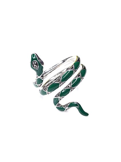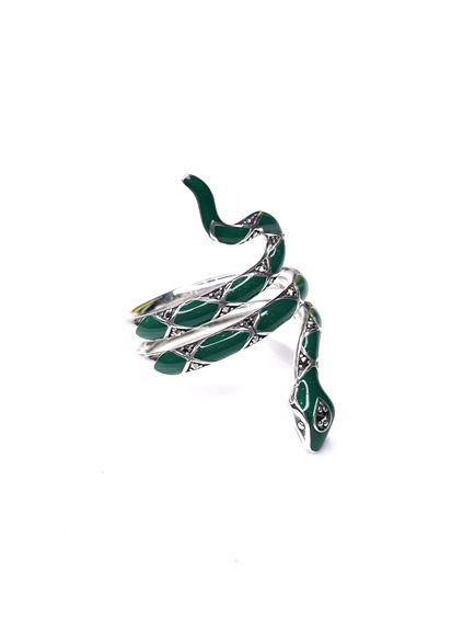 Anello serpente in argento 925/000 con smalto verde e marcassiti ,mis. 18 .
