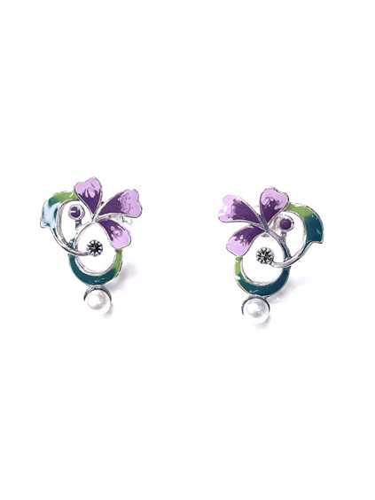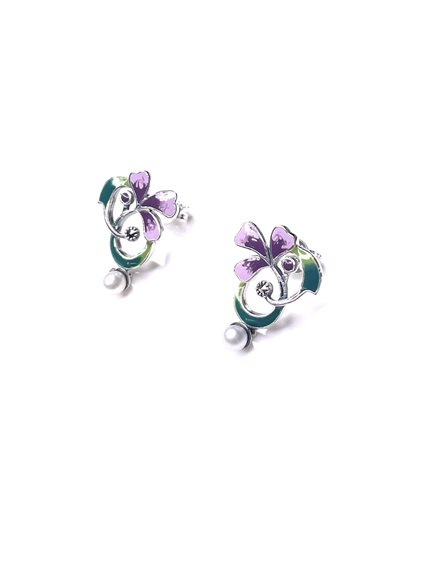 Orecchini in argento 925/000 con decorazione floreale smalto e perla d'acqua dolce pendente .