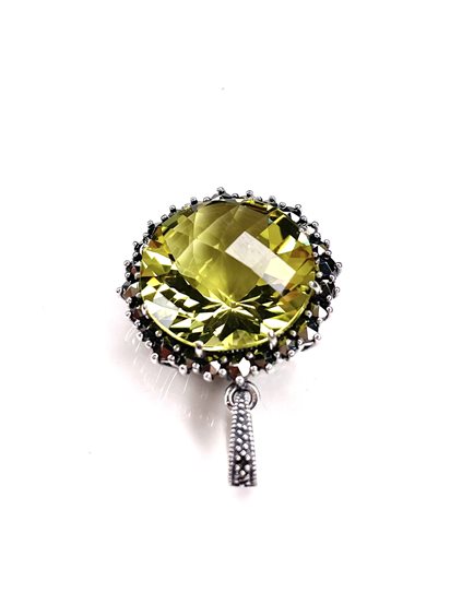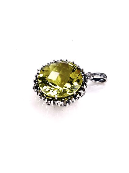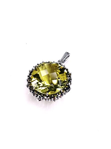Pendente in argento 925/000 con quarzo lemon centrale e marcassiti laterali .