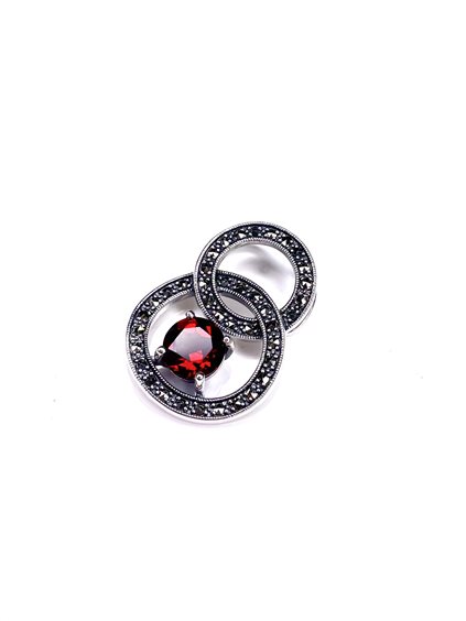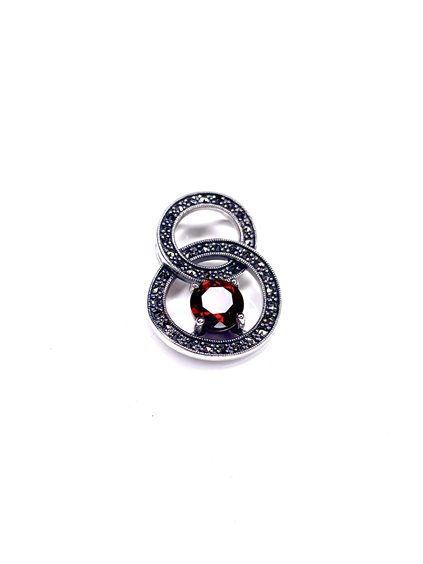 Pendente con due cerchi e una pietra centrale di granato Marcassiti sui due cerchi. Argento 925
