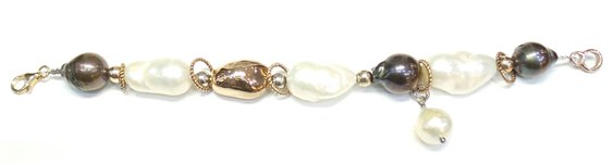 Bracciale donna argento rosè e perle scaramazze bianche e nere LAURA BELLINI lungo CM. 20,5 peso GR. 38,5 dimensione perle cm.1,5x2,2