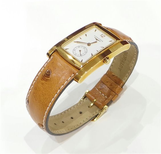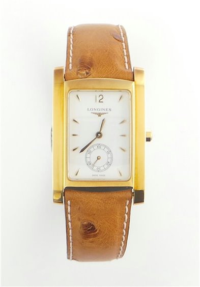 Orologio Longines Dolce Vita al quarzo donna. Cassa in oro giallo 18 carati mm 26 x 32. Fondo WR 3 atm chiuso a pressione. Corona ottagonale a pressione. Cinturino in vera pelle di struzzo con fibia dorata. Quadrante bianco con sfere e index dorati e secondina al 6. Vetro zaffiro. 2 anni di garanzia