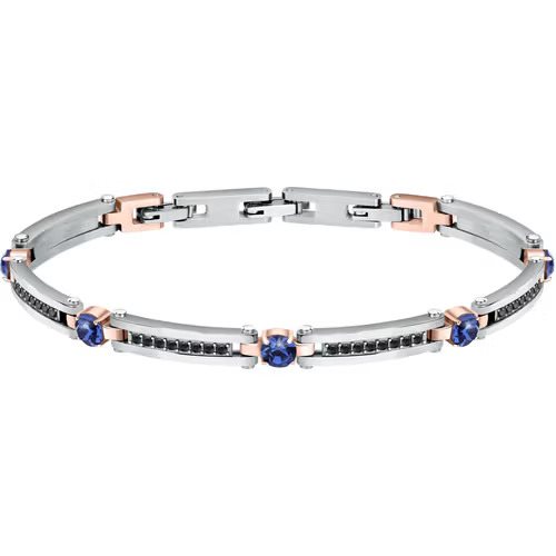 BRACCIALE MORELLATO URBAN - SABH23 - Genere : Uomo, Misura: 21,5cm, Colore: Nero, Rose-gold, Morellato experience: Fashion, Materiale: Acciaio, Cristalli, Peso: 33 gr, Pietra: Cristalli, Colore pietra: Blu, Certificato di autenticità: Sì, Confezione: Originale Morellato