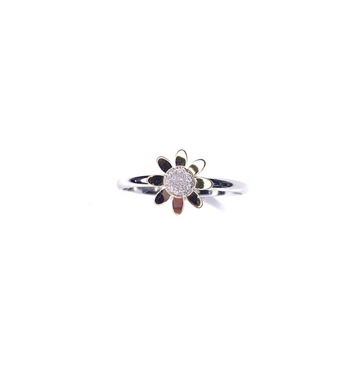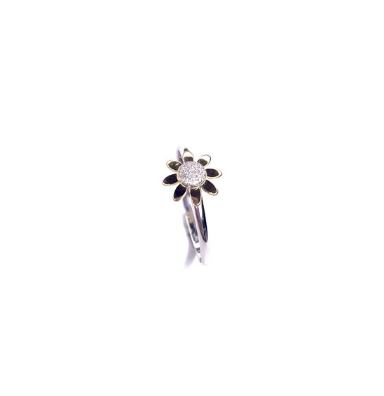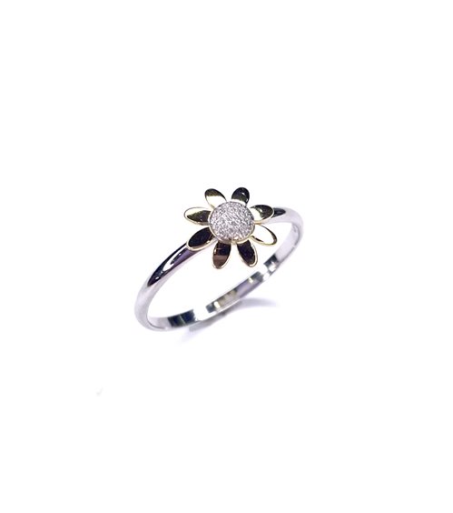 Anello bimba Stocco Gioielli in oro bianco 18 k con margherita diamantata ,petali gialli gr 1.46 ,misura 13.