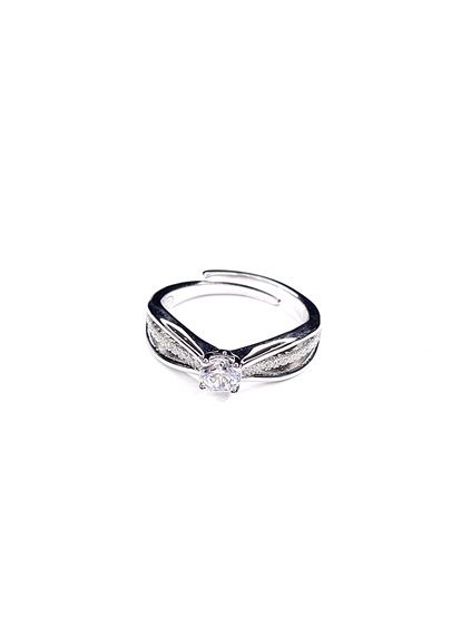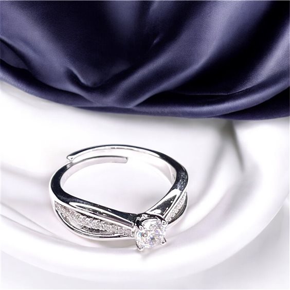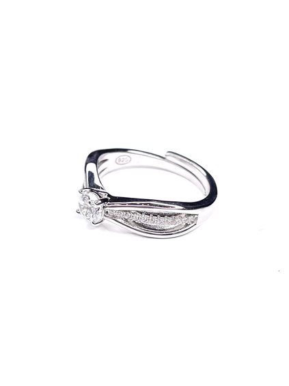 Anello donna in argento 925/000 con zircone centrale e file laterali . Gambo regolabile misure 11-17 .