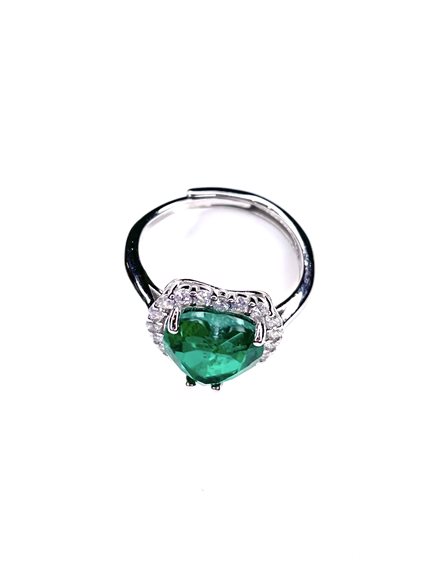 Anello donna in argento 925/000 con zircone centrale verde a cuore e laterali bianchi .Misura regolabile 11-19 .