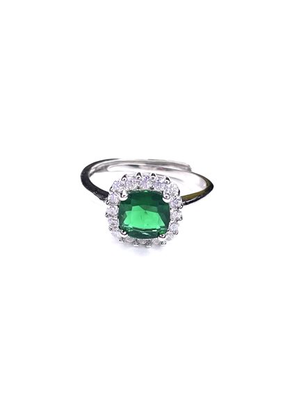 Anello donna Stocco Gioielli in argento 925/000 con zircone centrale verde e laterali bianchi . Misura regolabile 11-19.
