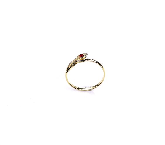 Anello Stocco Gioielli in oro giallo 18 kt con zircone rosso ,gr 1.22 ,misura 11.