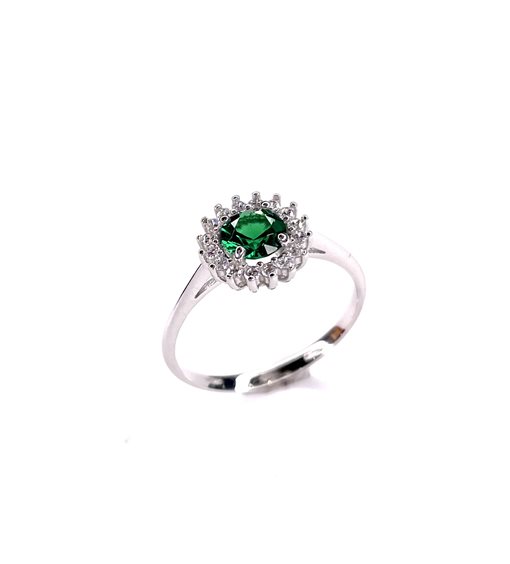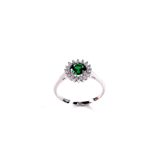 Anello Stocco Gioielli in oro bianco 18 k con zircone centrale verde e bianchi laterali ,gr 1.6 ,misura 12.