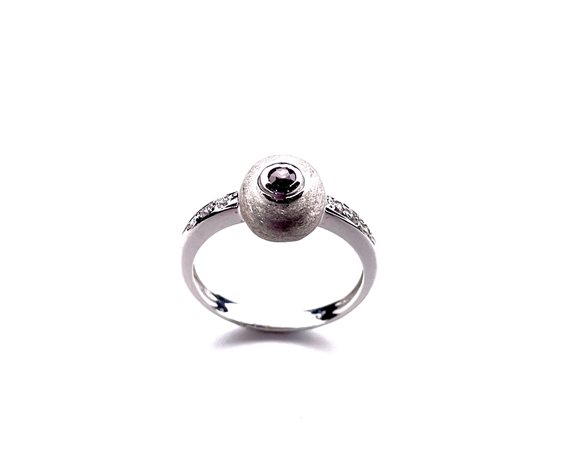 Anello Stocco Gioielli in oro bianco 18 k con castone satinato e rodolite ,zirconi sul gambo ,gr 3.93 ,misura 15.