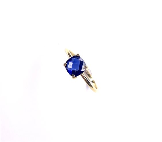 Anello Stocco Gioielli in oro giallo 18 k con zircone blu sfaccettato ,gr 1.8 ,misura 13.