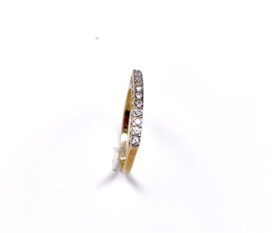 Anello in oro giallo 18 kt con fila di zirconi ,gr 2.76 , misura 16.