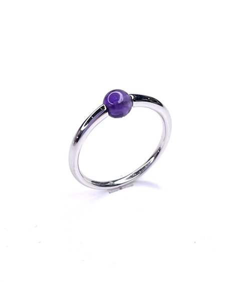 Anello Stocco Gioielli in oro bianco 18 kt con sfera d'ametista ,gr 2.41 ,misura 14.