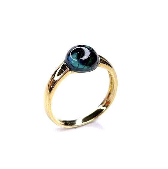 Anello in oro giallo 750/1000 gr 3,8 , misura 15 impreziosito da quarzo verde tondo taglio cabochon . Certificato d'autenticita' Oreficeria Stocco