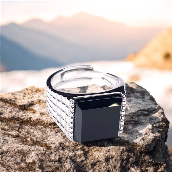 Anello uomo in argento 925/000 con onice .Gambo regolabile misure 14-20.