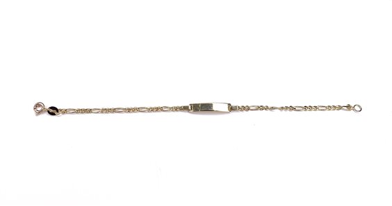 Bracciale in oro giallo 750/000 con targhetta cm 14.5, gr 1.49.