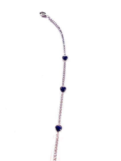 Bracciale tennis in argento 925 con cuori blu regolabile