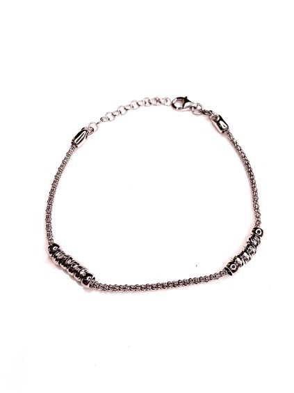 Bracciale donna in argento 925/000 con palline lisce e diamantate e catena finale di regolazione , cm 20 .