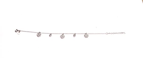 Bracciale donna in argento 925/000 con pendenti impreziositi da zirconi e catena finale di regolazione ,cm 19 .