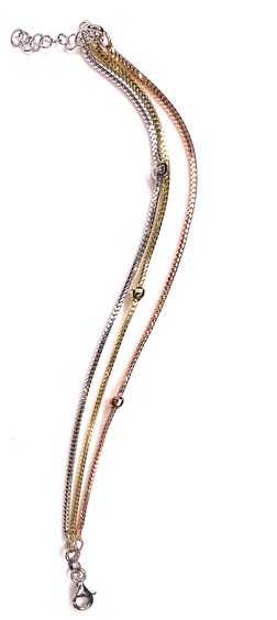 Bracciale donna multicolor in argento 925/000 a tre fili con catena finale di regolazione ,cm 19.5 .