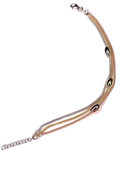 Bracciale donna multicolor con tre fili in argento 925/000 e catena finale di regolazione ,cm 19,5 .