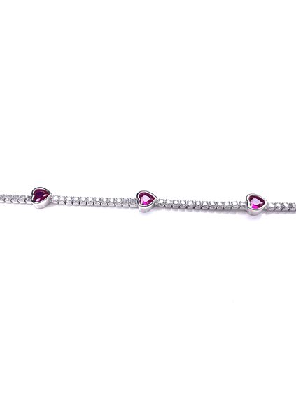Tennis argento e cuori con zirconi rossi e bianchi.