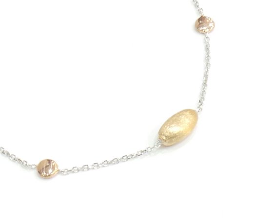 BRACCIALETTO DONNA ORO BIANCO E ROSA 18 KT. CON 3 PEPITE SATINATE E 2 DISCHETTI LUCIDI LUNGHEZZA CM. 17,5 PESO GR. 3