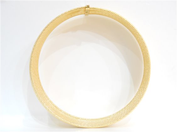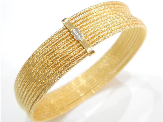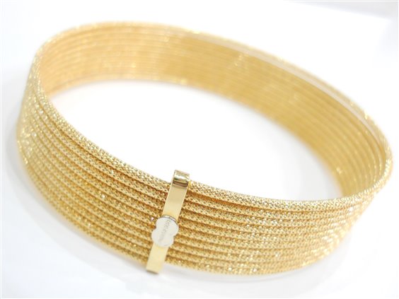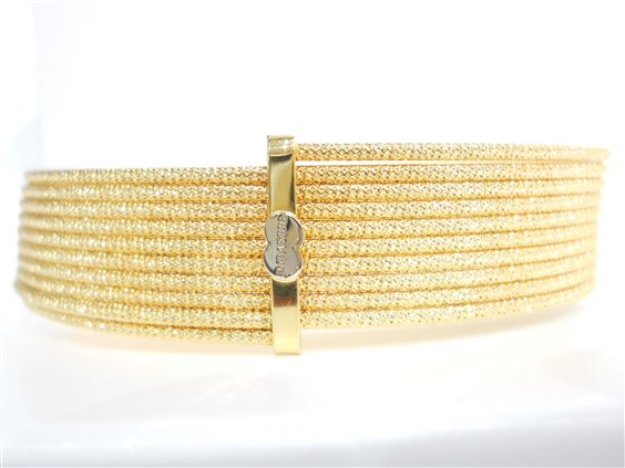 Bracciale UNOAERRE oro giallo 18 kt. a cerchi lavorazione diamantata diametro cm . 6.7 larghezza di un cerchio cm. 1.5 in totale sono 10 cerchi non apribili pesp gr. 32.7