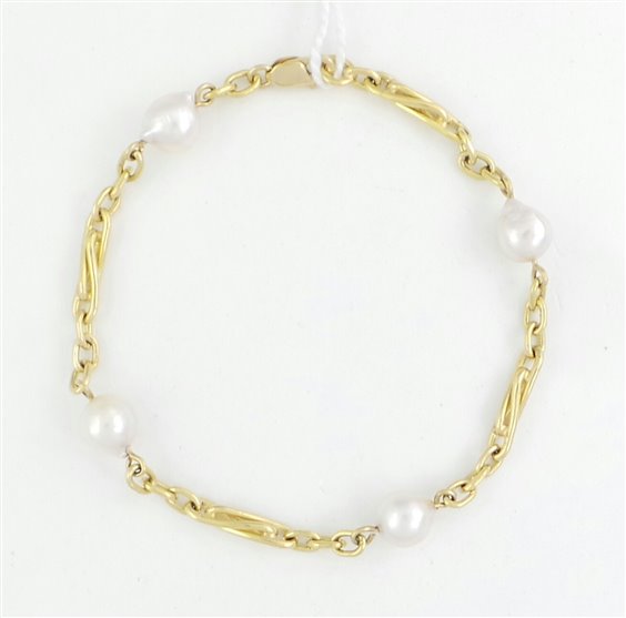 Bracciale oro giallo 18 kt e perle diam 7/7.5 barocche gr 8.6 lung cm 18