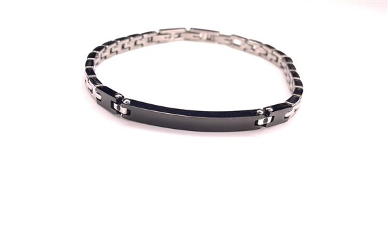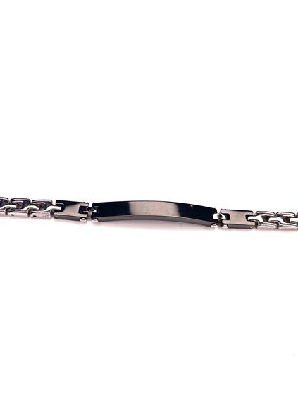 Bracciale uomo in acciaio con targhetta nera ,cm 20,5 .