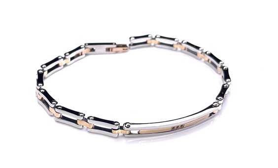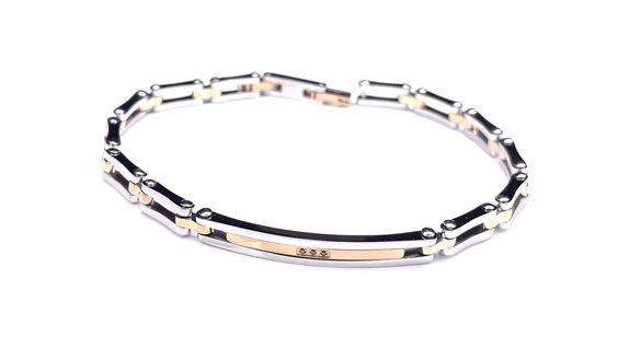 Bracciale uomo in acciaio con maglia bicolore e targhetta cm 21.