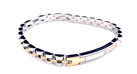 Bracciale uomo in acciaio con maglia bicolore e targhetta cm 20,5.