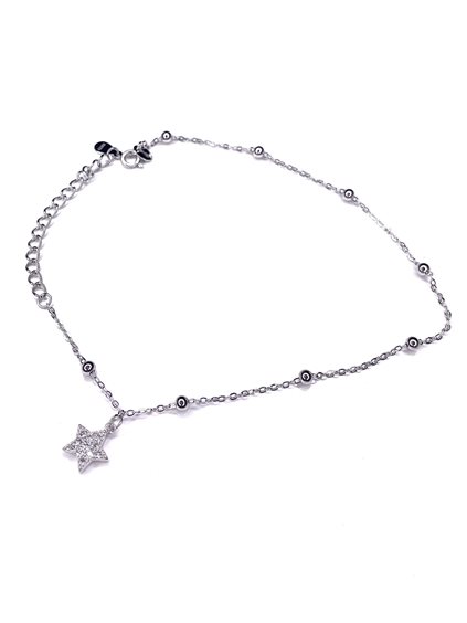 Cavigliera in argento 925/000 con stella di zirconi ,cm 27 .