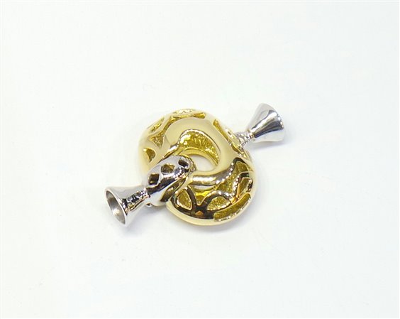 Chiusura Stocco Gioielli in oro giallo e bianco 18 K per filo perle chiusura a scatto dimensione cm. 2,9 x 2 peso ,gr. 6 .