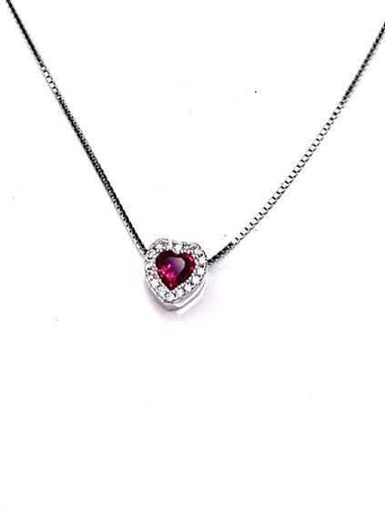 Collana girocollo donna in argento 925/000 con cuore rosso contornato da zirconi bianchi . Lunghezza cm 45.5 con catena finale di regolazione .