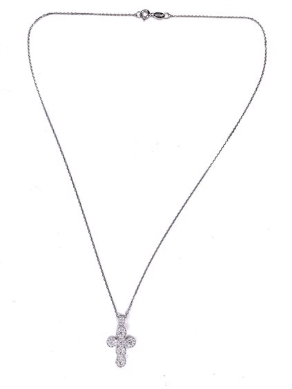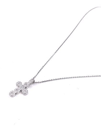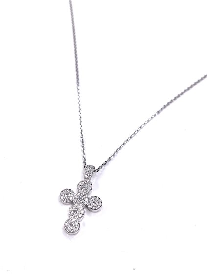 Collana donna in argento 925/000 con croce di zirconi . Lunghezza cm 42 .