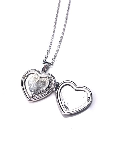 Collana in argento 925/000 cm 45 con cuore portafoto impreziosito da zirconi.